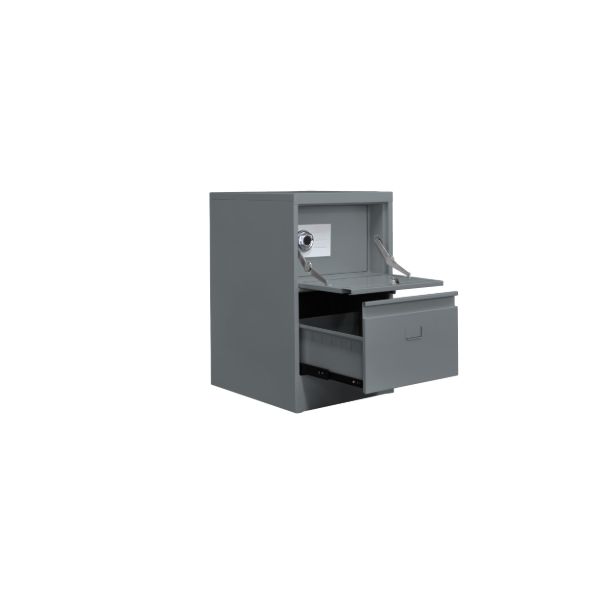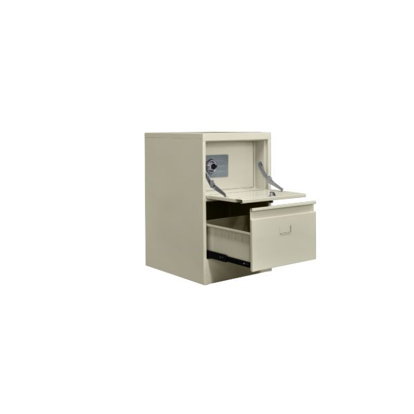 Standard vertical filing cabinets for file folders and documents, with a built-in fireproof safe compartment.